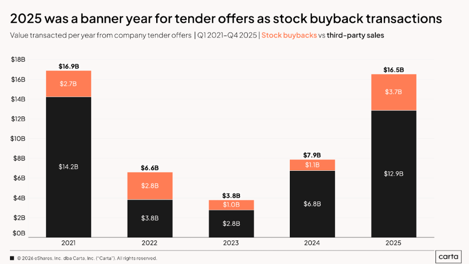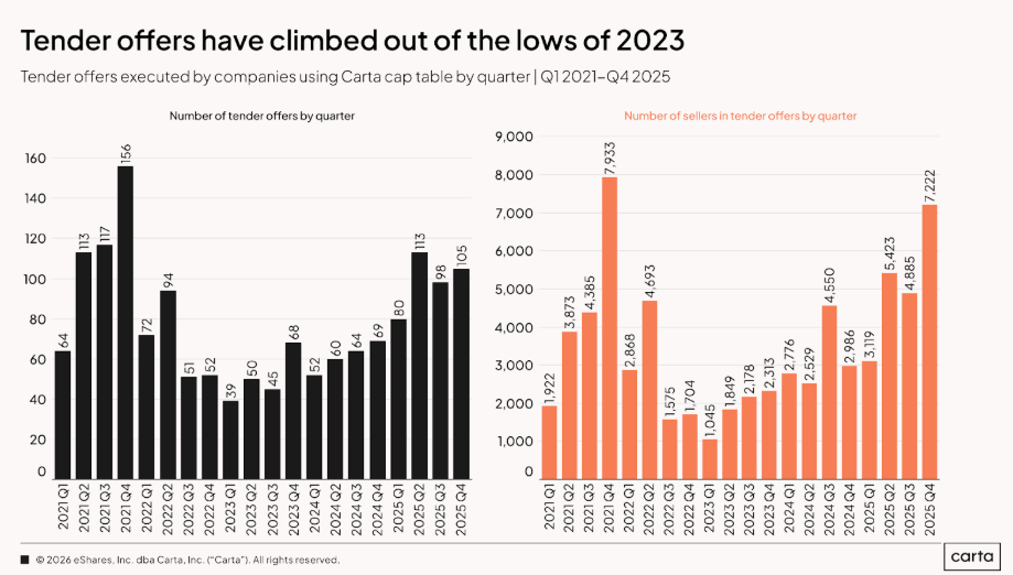 Still, the underlying direction is clear: Tender offers have graduated from “emergency liquidity event” to a part of the playbook for well-run late-stage companies.